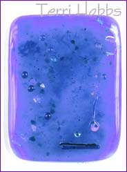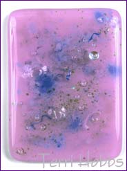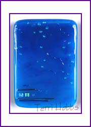 layers, with blue powder and dichroic frit. Shaped with diamond grinder.