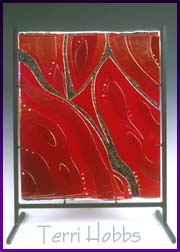 Confluence -- red irridized glass with dichoric frit on white glass with
