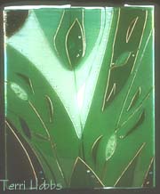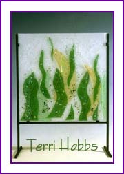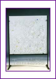 clear, and green frit tack fused over. Touches of mica paint. Spring at last
