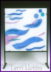 18x18 inches clear layer over white. Green and yellow waves with dichroic,